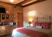 Cottage Suite #10 is a vintage knotty pine room for 2 , attached to the main lodge/ coffee shop with separate outside entrance. Approximately 200 square feet, this suite includes king size bed, full bath and mini-kitchenette.