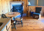 The Three Pines formerly known as Cabin #3- is a 1 bedroom, 1 bathroom individual cabin. The Three Pines has a cozy free standing gas log fireplace and knotty pine interior.