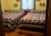The floors of this old cabin are a bit unlevel. This cabin features an 8×24 foot covered front porch. No smoking.