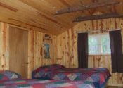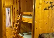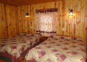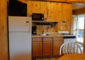 - Medium Cabin #3 ~ The Three Pines – updated medium cabin with gas fireplace, knotty pine interior. 1 bedroom with 2 queens, 1 bathroom with 48″ shower