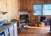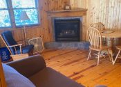 The Three Pines formerly known as Cabin #3- is a 1 bedroom, 1 bathroom individual cabin. The Three Pines has a cozy free standing gas log fireplace and knotty pine interior.